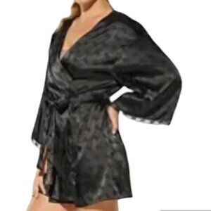 YITTY Women's Satin Pretty Mini Robe Size Medium Iconic Black Lizzo