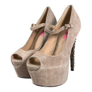 YK2 Betsey Johnson Nude Studded Peep Toe Mary Jane Stiletto Suede Heels Size 8