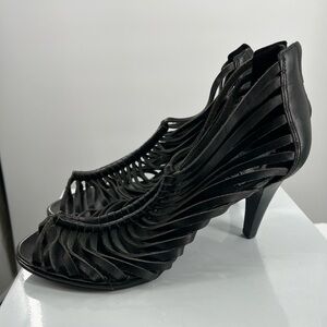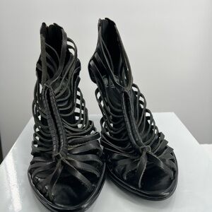 YKK Black Leather Strapped Heels Ladies Size 9.5M