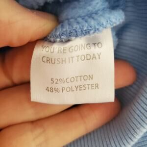 Material: 52% Cotton / 48% Polyester (care tag reads "YOU'RE GOING TO CRUSH IT TODAY" above the fiber content).