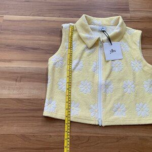 YLLW The Label Jette Zip Vest Yellow Floral Terrycloth Top NWT
