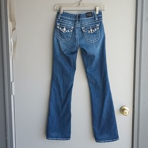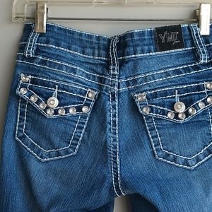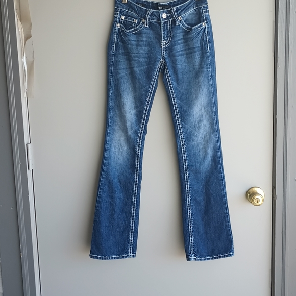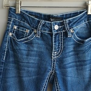 YMI Jeans Size 1 White Stitching Boot Cut Low Rise W 12 L 29 EUC Fits 24