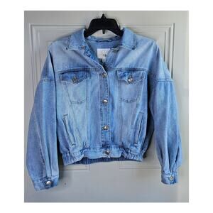 YMI 80s Style Throwback Denim Jacket Elastic Hem Size Small Medium Wash Grunge