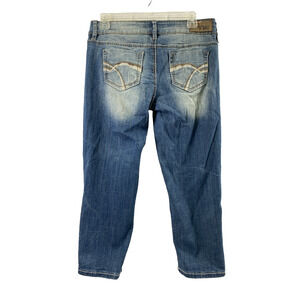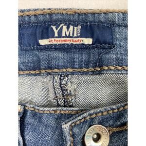 YMI Ankle Jeans Juniors Size 9 Distress Medium Wash Denim Thick Stitch Stretch