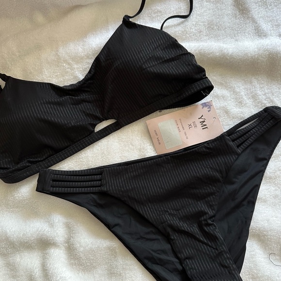 Chic black bikini with ribbed design. Ideal for beach days. NEVER WORN!