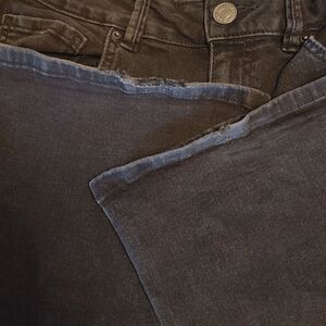 Solid black, stretch sustainable denim. High waist. 3 front pockets, 2 snap button closure back pockets. Belt loops. Western boho style, with bootcut hems. Button zip fly closure. Super soft & stretchy.