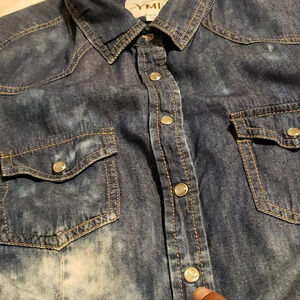 YMI Denim Shirt / Snap Button Down / Acid Washed / Size Medium