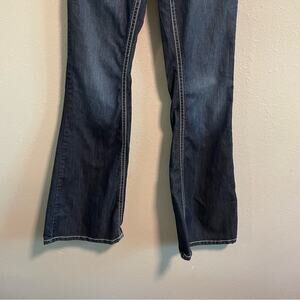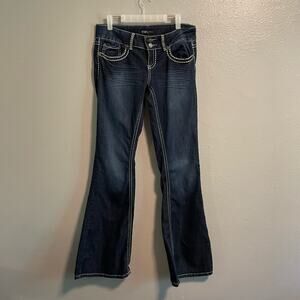 YMI Embroidered Flair Stitched Jeans Indigo Dark Blue Low Rise Y2K Size 9/Med