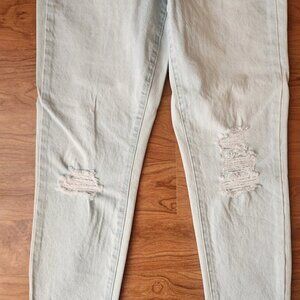 Jeans, denim, cropped, ankle, mom, skinny, distressed, casual, beach, light wash, knee holes, casual, versatile, beach, summer, spring, winter, fall, 80's, vacation, camping, work, school, casual, travel