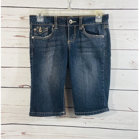 YMI Jean Shorts Womens Size 0 Denim Long Shorts Ladies Dark Wash Low Rise