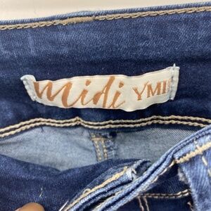 Midi YMI skinny jeans Inseam 26” Waist 26” Rise 10” Back leather patch has come loose - see pics Gently Worn