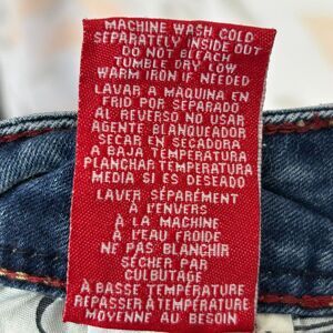 The blue medium wash denim offers a classic look, while the distressed detailing adds a touch of edginess. With a comfortable low rise and skinny fit, these 5-pocket jeans are perfect for everyday wear. They are pre-owned but in great condition. Don't miss out on these trendy jeans!