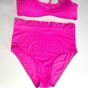 YMI Hot Pink Grommet Accent Bikini including Scoop Neck Top and High Waist Full Coverage Bottoms; NWOT