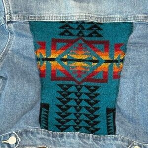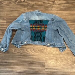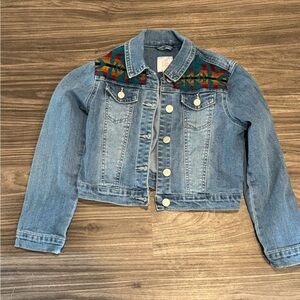YMI Kids Denim Jacket Medium Tribal Aztec Patch Southwestern Boho Jean Jacket