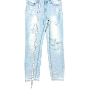 YMI Light Wash Distressed Denim Overalls Womens Size 11