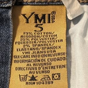 YMI Los Angeles USA Made Juniors Bib Overalls Blue Stretch Size 5. According to the YMI size guide a Size 5 is a 27" waist and 37.5" hips. Pre-owned, these overalls are in great condition.