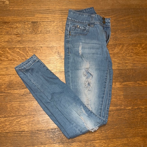 These jeans are very cute and stretchy. They’re on the smaller side and if your tall they might not come passed your ankles. They have a little black stain from hair dye on them so I won’t be asking for much on these but I think they’re very comfortable and cute just can’t fit them no more.