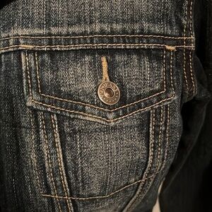 YMI SIZE MEDIUM CROPPED JEAN DISTRESSED JEAN JACKET. SUPER CUTE