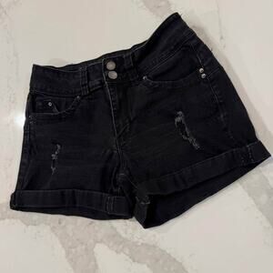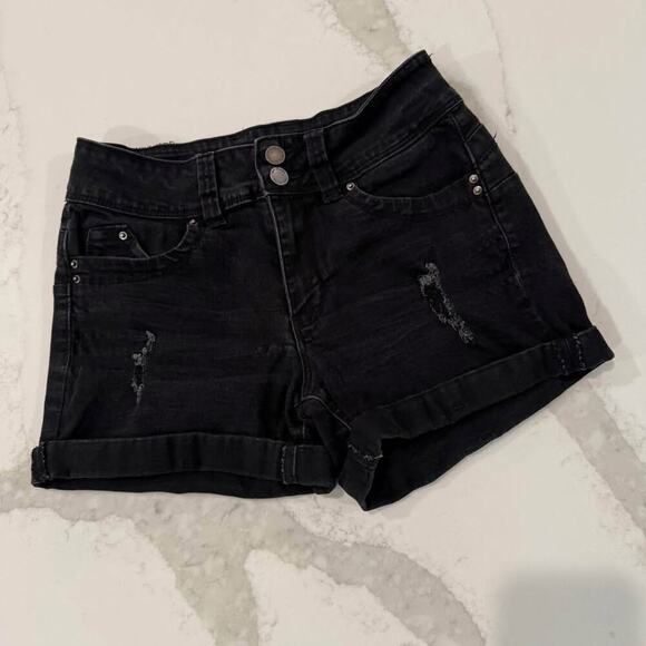 YMI Wanna Betta Butt HighRise Distressed Cuffed Denim Jean Shorts Womens 5 Black