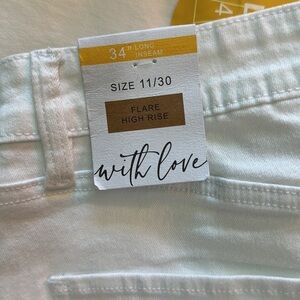 YMI White Women's Casual Flare Leg Jeans Raw Hem Bell Bottom Denim Pants