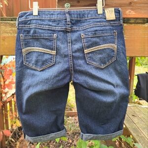 Stylish blue denim jeans. Features rolled cuffs and classic stitching. Perfect for casual wear.
