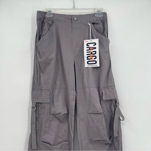 YMI Women’s MID RISE ALL DAY CARGO PANTS Gray COTTON NWT size S Drawstring hem