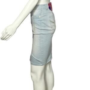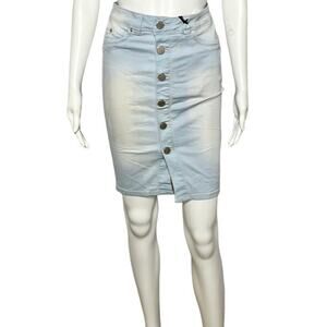 YMI Women's Wannabettabutt Button Down Pencil Skirt Lightwash Size1/25