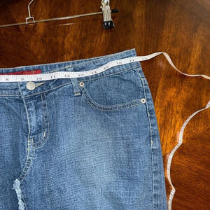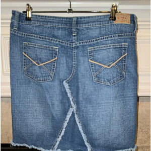 YMI Y2K Mid Length Patched-Frayed Denim Faded Skirt- Juniors Size 13