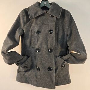 YMI Pea Coat Juniors Sz S Double Breasted w Back Tab Charcoal Gray Wool Blend