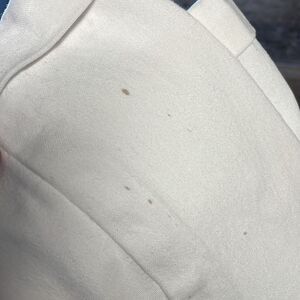 These Jeans were preowned and I did find a few minor flaws/spots as pictured above. They have a few very small dots near zipper and on legs near ankles. Selling as is! Review the pictures before purchase. They are minor spots and are hard to notice unless you are looking for them.