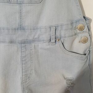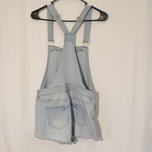 Very cute YMI light blue denim short overalls has 2 side buttons on each side front and back pockets and leg front chest pocket 30" waist