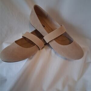 Y-NOT? Beige Suede Ballet Flats with Strap Wom en's 8.5 NWOT