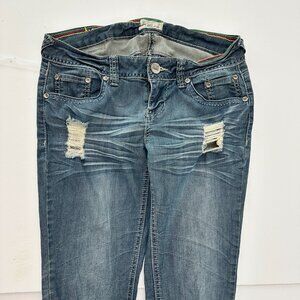 YNQ Distressed Cropped Women's size 5 Dark Wash Blue Denim jeans