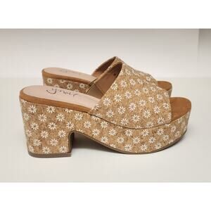 Y-Not? Suki Daisy Cork Platform Block Heel Slide Textile Upper Sandals Size 6M
