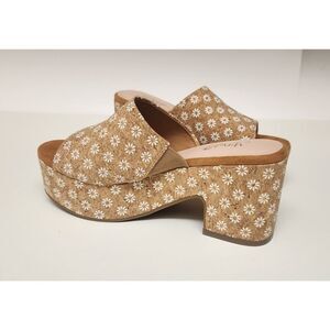 Y-Not? Suki Daisy Cork Platform Block Heel Slide Textile Upper Sandals Size 6M