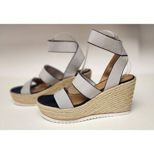 Y-Not Women's Size 10M Navy Blue/White Elastic Band Wedge Espadrille Sandals 8M.