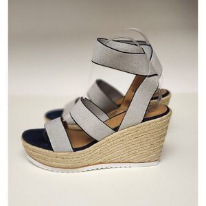 Y-Not Women's Size 10M Navy Blue/White Elastic Band Wedge Espadrille Sandals 8M