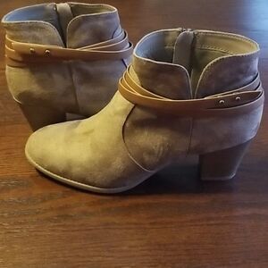 Have a small amount of wear, mainly on the R heel and band. Barely noticeable. See pictures.