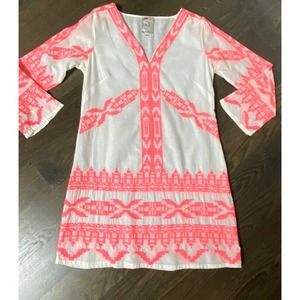 YOANA BARASCHI WHITE/NEON PINK "EMBROIDERED" DRESS RESORT~COVER UP~XS