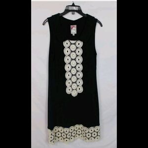 YOANA BARASCHI BLACK WITH IVORY CROCHET LACE SIZE M SLEEVELESS SWEATER DRESS