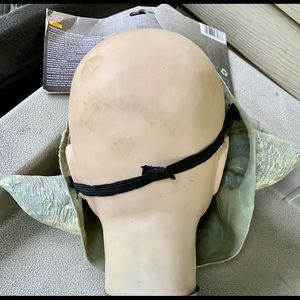 YODA mask is rubber which covers the front of the face. Black elastic around the back