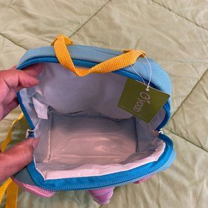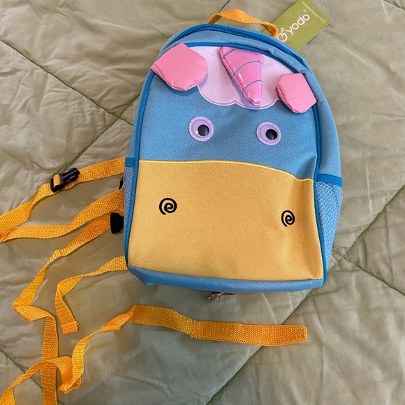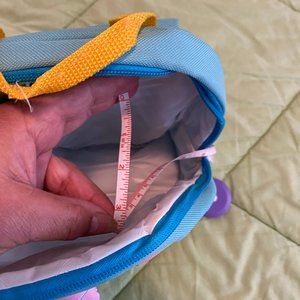 3-way kids suitcase/backpack. Pink, blue, yellow unicorn. Backpack has parent leash. Measures 9/5 X 4.5 X 14.5. Padded front pouch add'l thick padded panel at backside. NEVER USED; tag attached.