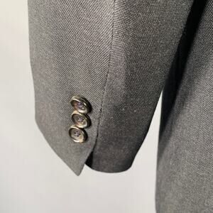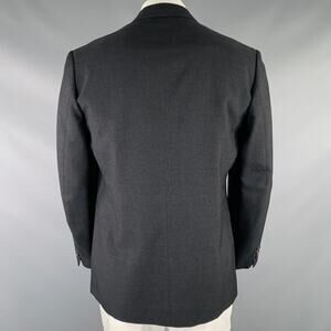 YOHJI YAMAMOTO sport coat in a grey wool fabric featuring raised contrast stitching details on notch lapel, ventless back, and three button closure. Made in Japan.