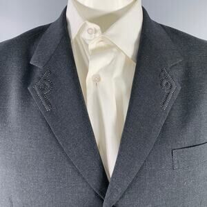 YOHJI YAMAMOTO Size XL Grey Contrast Stitch Wool Sport Coat