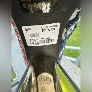 YOKI Willen Rose Gold Glitter Denim Graffiti Cylinder Heel Zip Ankle Boot 7 WILD