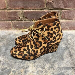 YOKI Women’s Randy Cheetah Lace Up Wedge Shoe Size 8