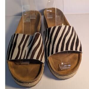 YOKONO Calf Hair Leather Zebra Print Slide Sandals Made in Spain Women's 9