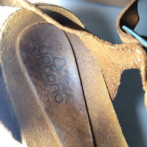 YOKONO Sandals Women's Size 7 Tan Brown Mini Wedge Strappy Shoes Buckle Summer