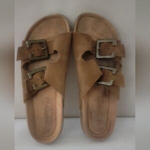 Yokono tan suede leather slide style sandals (sz 7.5). The sandals are in very good condition. Please see all pictures.