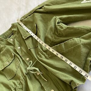 YOLO Olive Green Crop Cargo /Utility Jacket statement designs on arm sleeves